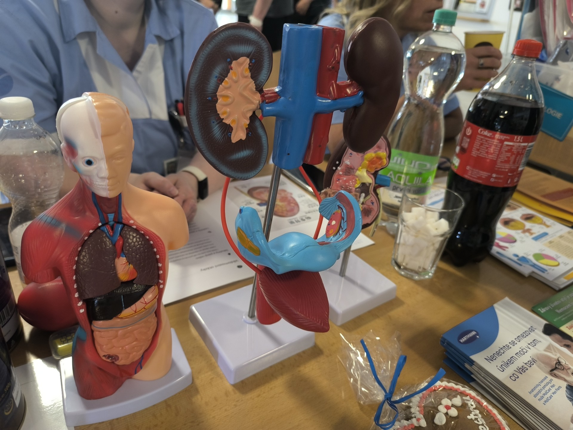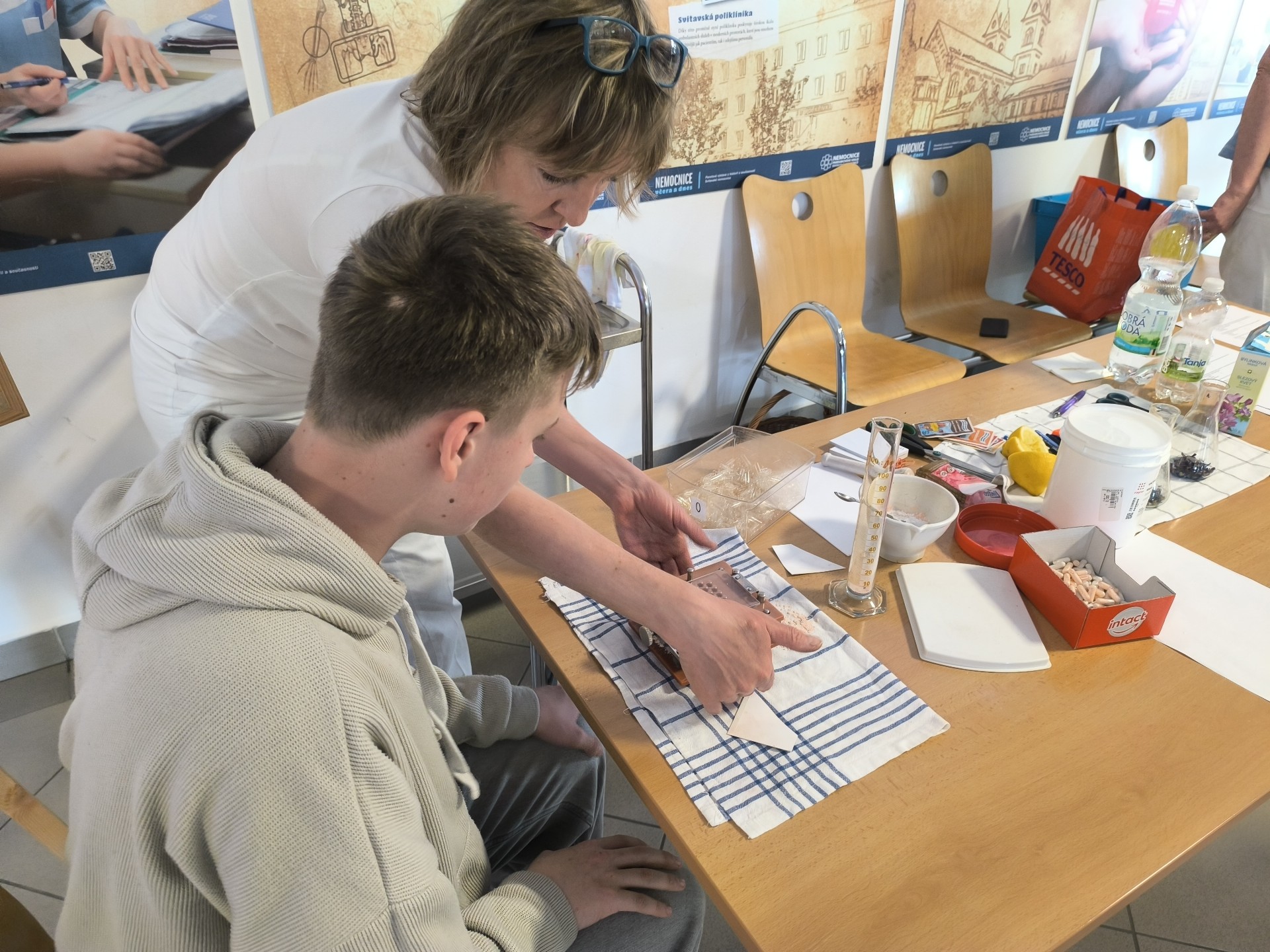 Na dalších stanovištích si návštěvníci vyzkoušeli nácvik hygieny rukou s kontrolou pod UV lampou, test čichu, test závislosti na návykových látkách, ochutnali zdravou a nutričně vyváženou svačinku nebo otestovali svoji fyzickou zdatnost na stanovišti rehabilitačního oddělení, kde fyzioterapeuti pracovali s balančními pomůckami. V neposlední řadě sestry z urologického oddělení poskytovaly informace o zdravém pitném režimu – jaké tekutiny zařadit, kolik cukru obsahují slazené nápoje nebo jak lze řešit inkontinenci.