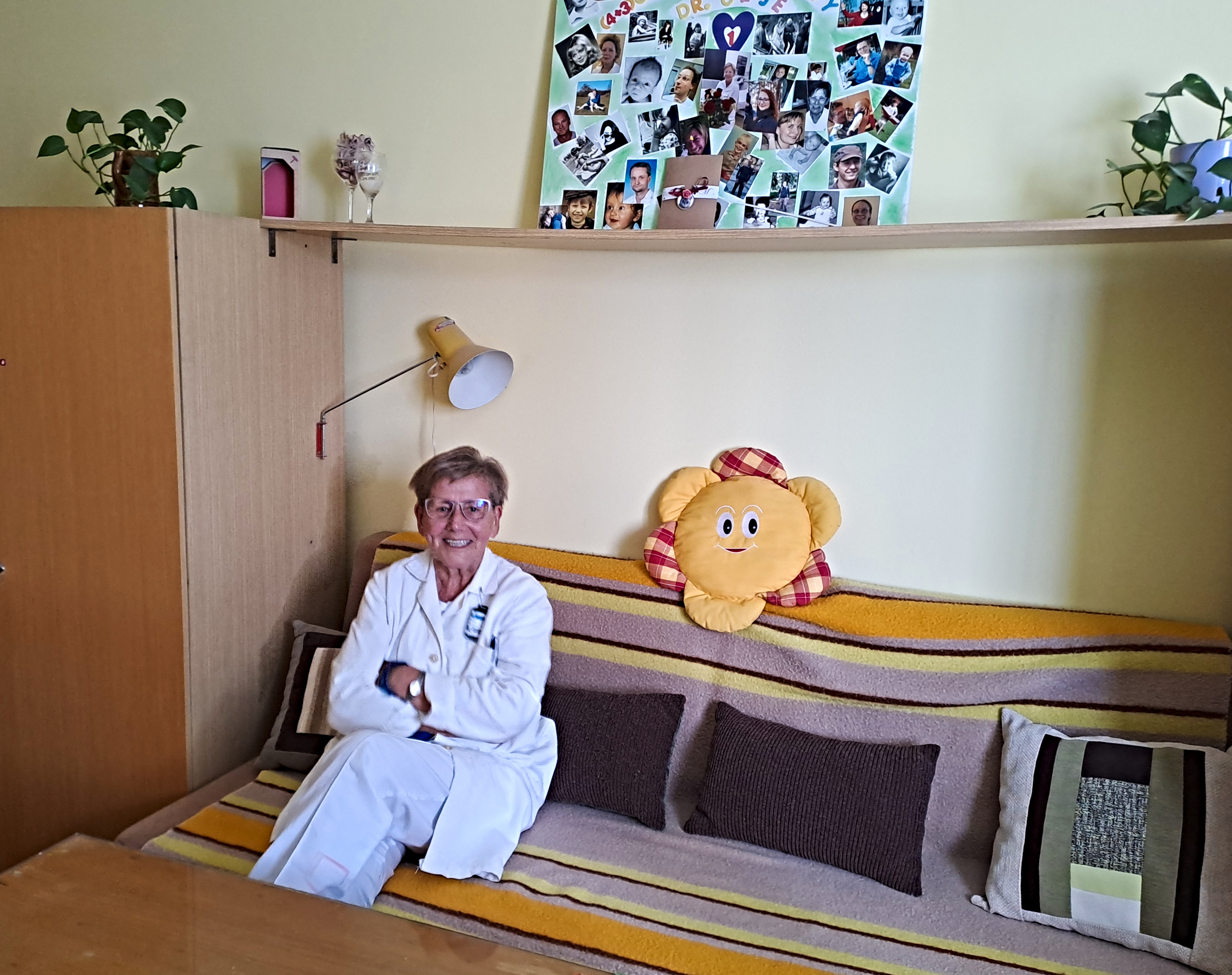 „Tuhle jsem slyšela nějaký pořad, kde zaznělo, že vůbec není na škodu, když na jednom pracovišti jsou různé generace. Je to naopak obohacující a já to potvrzuju.“ Lékařka také oceňuje, že její lékařský pokoj zůstává stále stejný, vybavený původním nábytkem: „Je to klasický univerzál z roku 1975. Je tady vlastně kvůli mně, i přes několik stěhování to tu zůstává jako tehdy, kolegové to respektují a já se tu cítím dobře. A tady nad křeslem mám nástěnku, kterou mi udělali k 70 narozeninám, jsou na ní fotky všech, kteří tu tehdy pracovali,“ říká s dojetím. Navzdory dlouhé kariéře Lidmila Ulvrová nikdy nepřemýšlela o změně působiště. „Mám nedaleko rodiče a musela jsem se o ně starat, a navíc jsem byla 25 let ve funkci zástupkyně primáře a kolegové si mě vážili, tak mě ani nenapadlo jít jinam,“ vysvětluje radioložka a opět chválí špičkově vybavené pracoviště, kde denně zvládnou vyšetřit až 350 pacientů.
