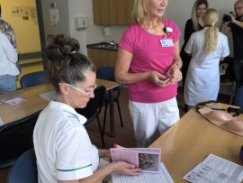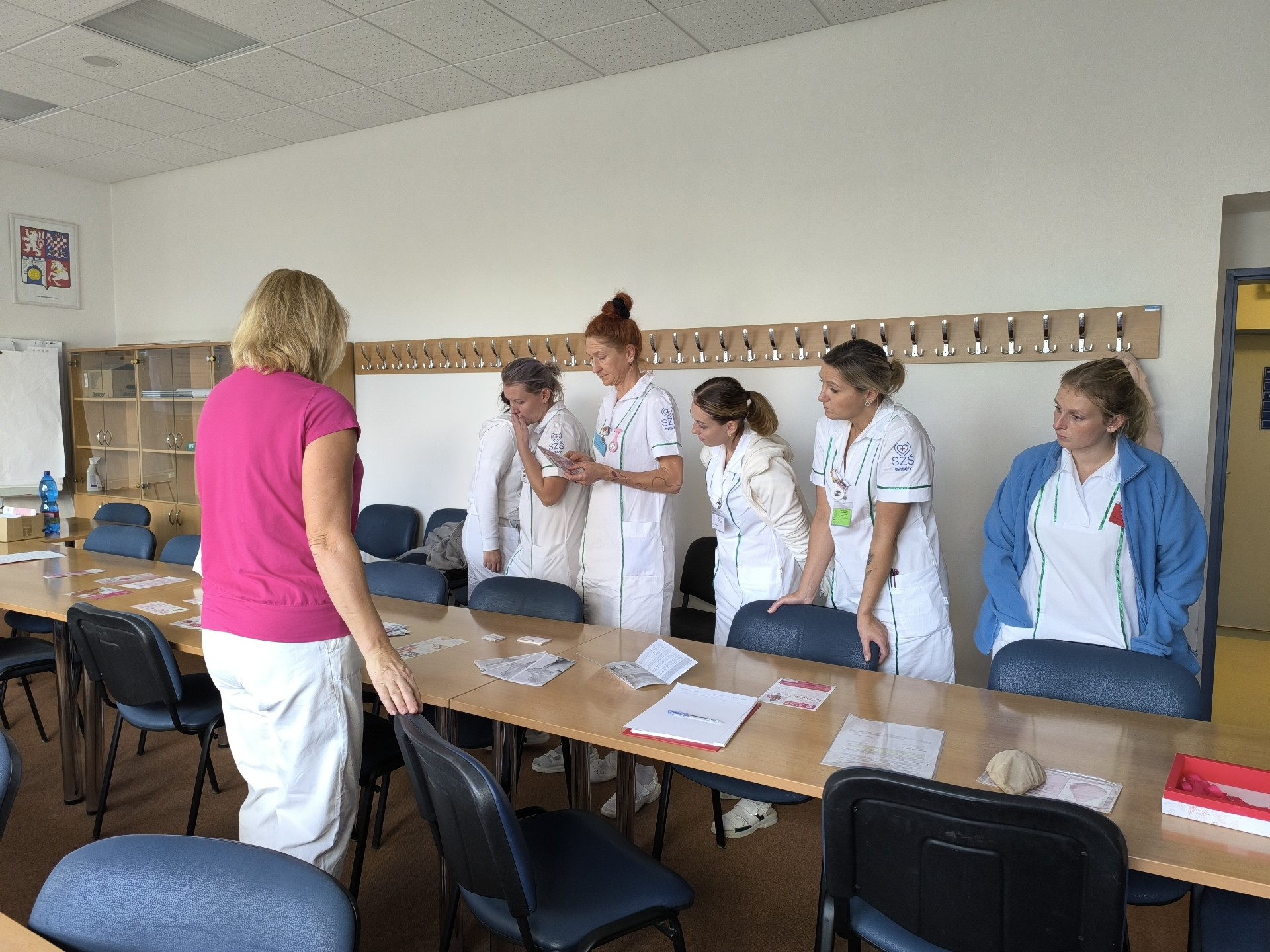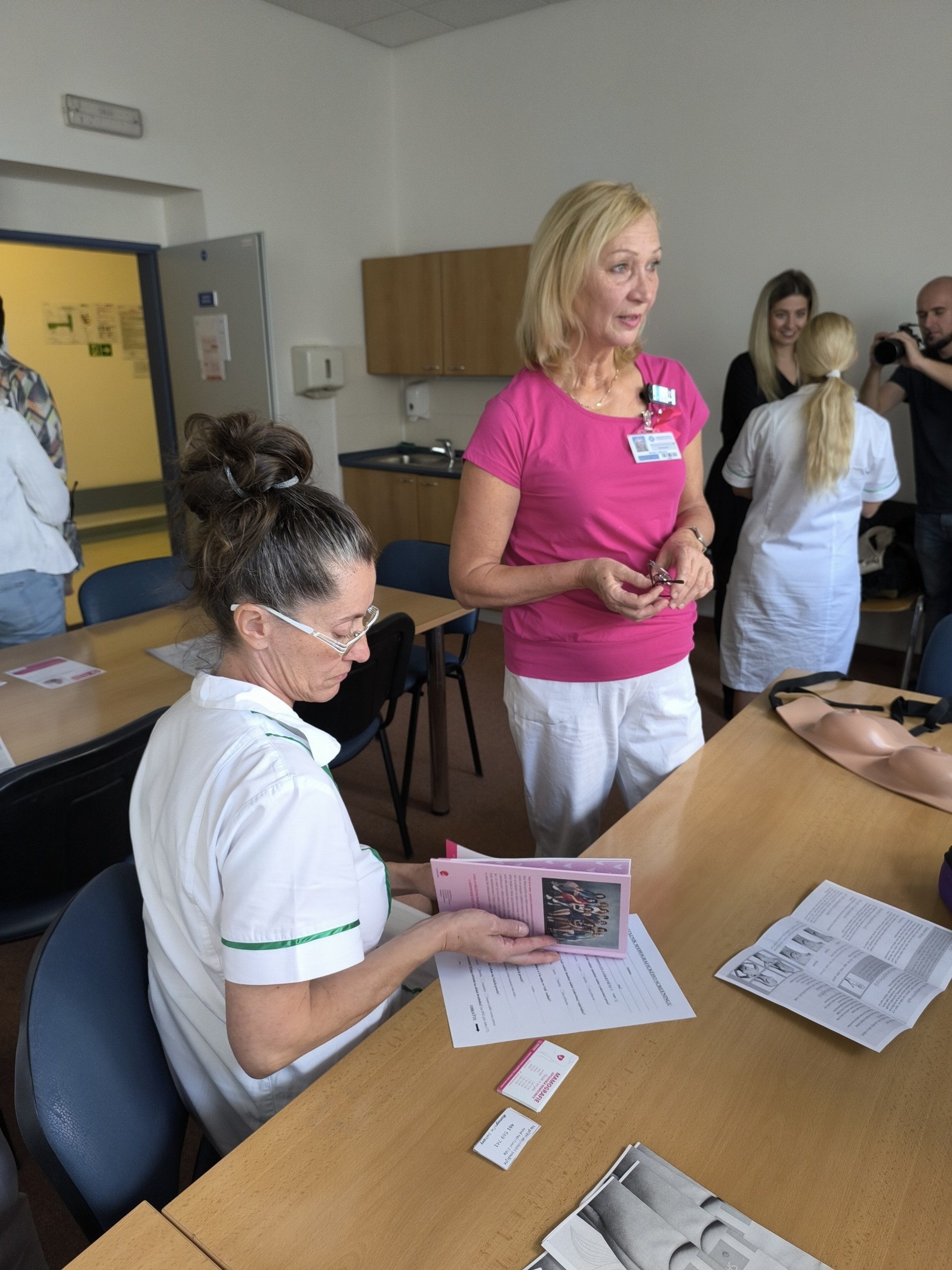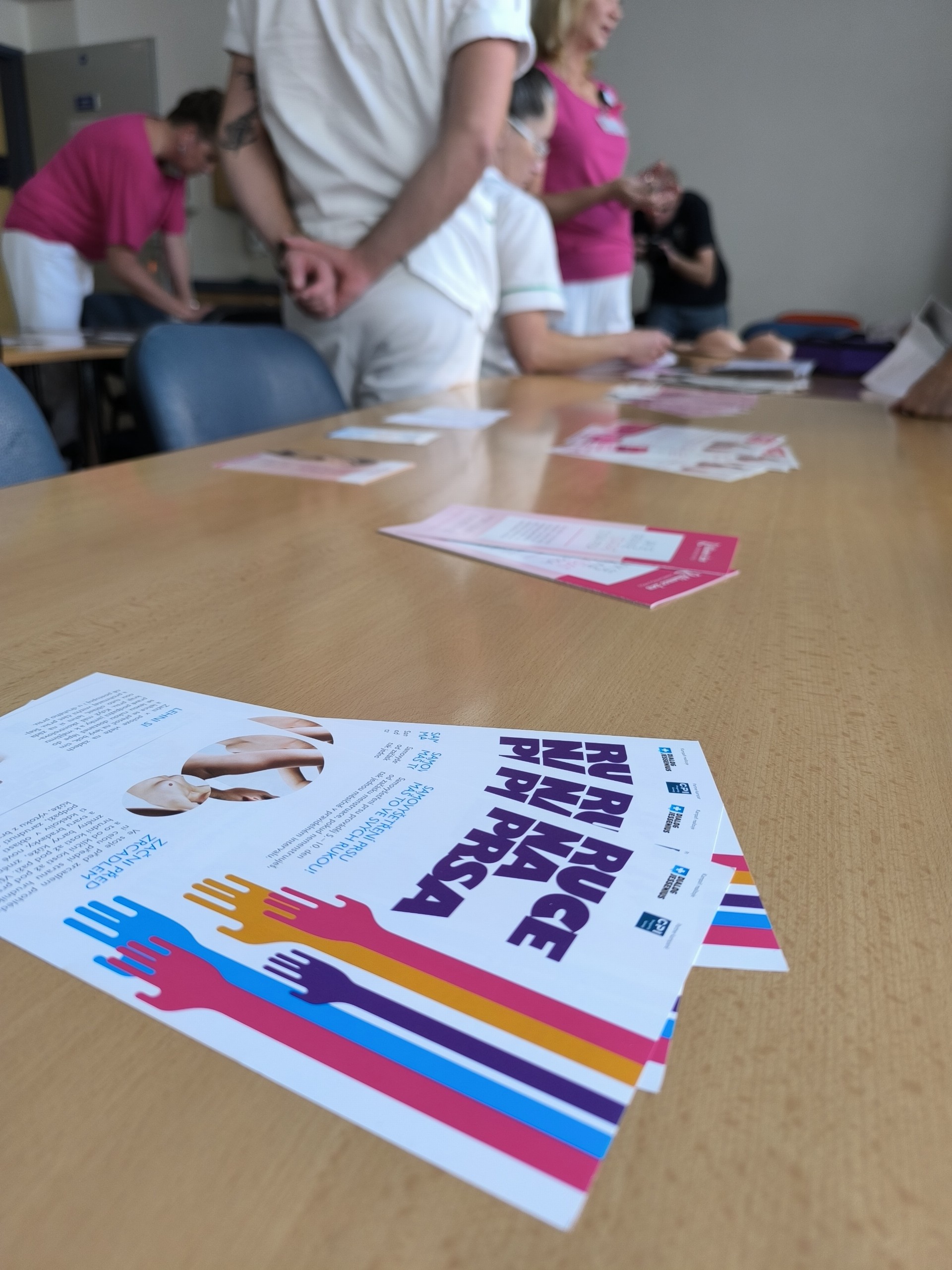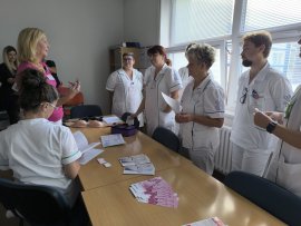 Růžový říjen má poskytnout více informací veřejnosti ohledně prevence rakoviny prsu a dnešní setkání bylo určeno speciálně pro zaměstnance. Chtěli jsme, aby mohli za námi přijít, podívat se na model prsou a zjistili, jak se dají vyšetřit, získali informace o pravidelnosti sebevyšetřování a případně věděli, že pokud dojde k tomu, že si něco najdou, tak jaký je další postup.